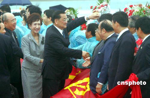 中新社上海五月一日電(記者許曉青)中國國民黨主席連戰(zhàn)率國民黨大陸訪問團一行于今天下午飛抵上海,開始他此番大陸之行的最后一站活動。雖然今天上海曾一度雷雨交加,整天陰雨連綿,但這絲毫沒有減低在滬臺商對歡迎連戰(zhàn)一行的熱情,臺商們對其到來反響強烈。