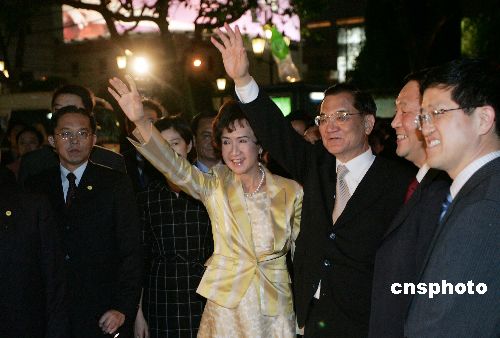 中新社上海五月二日電(記者許曉青 劉舒凌)二日晚九時(shí),此間時(shí)尚所在——上海新天地,正在此間訪問(wèn)的中國(guó)國(guó)民黨主席連戰(zhàn)夫婦與親友前來(lái)游覽,未料太多媒體記者與上海市民聞風(fēng)前來(lái),他們?cè)谂c市民短暫揮手致意后離開(kāi)。