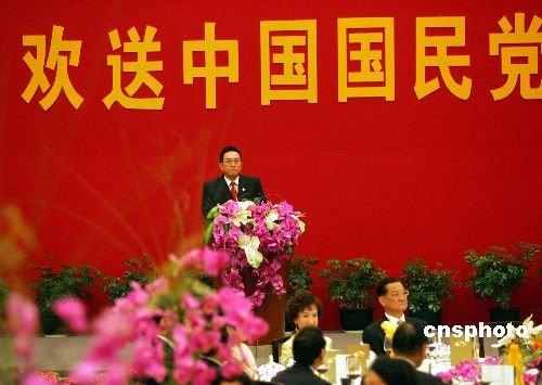 五月二日晚,歡送中國國民黨大陸訪問團(tuán)宴會在上海舉行。中臺辦主任陳云林說,國民黨大陸訪問團(tuán)八天揭開兩黨關(guān)系新篇章。作者:潘索菲