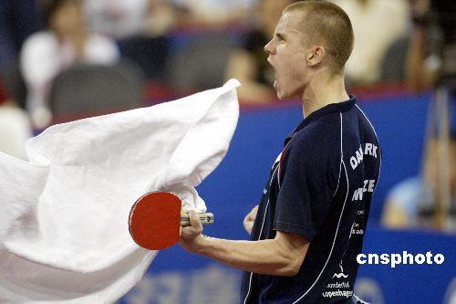中新社上海五月五日電 (記者 王歡)繼昨天爆冷戰(zhàn)勝了奧運(yùn)會(huì)男單亞軍、中國(guó)選手王皓之后,已經(jīng)打瘋了的丹麥人梅茲一發(fā)不可收拾,在今天與中國(guó)小將郝帥的世乒賽男子單打四分之一決賽中,零比三落后的他以打不死的韌勁和退臺(tái)放高球的打法,連扳四局反敗為勝。