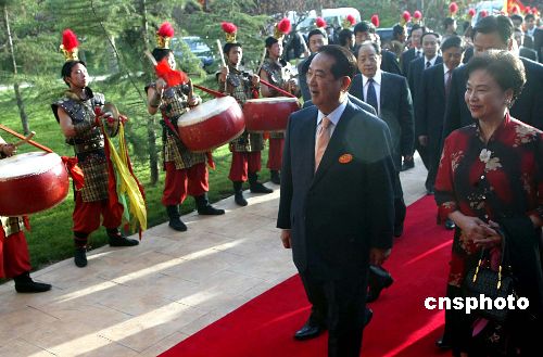 五月五日,由親民黨主席宋楚瑜率領(lǐng)的親民黨大陸訪問(wèn)團(tuán)抵達(dá)西安。訪問(wèn)團(tuán)一行首站前往大唐芙蓉園體味唐風(fēng)唐韻。作者:廖文靜