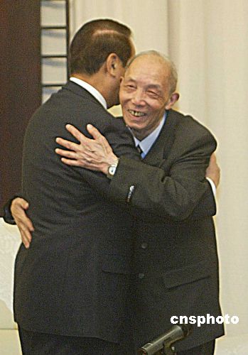 返鄉(xiāng)祭祖的宋楚瑜及家人9日中午在湘潭盤龍山莊與大陸親屬會面。分隔56年的親人一朝相見,不少人都當(dāng)場流下了熱淚。