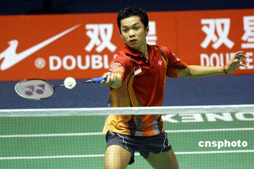 五月十日,第九屆蘇迪曼杯世界羽毛球混合團(tuán)體錦標(biāo)賽小組賽在北京首都體育館進(jìn)行,印度尼西亞名將陶菲克在男單比賽中,信心十足。圖為陶菲克在比賽中。作者:盛佳鵬