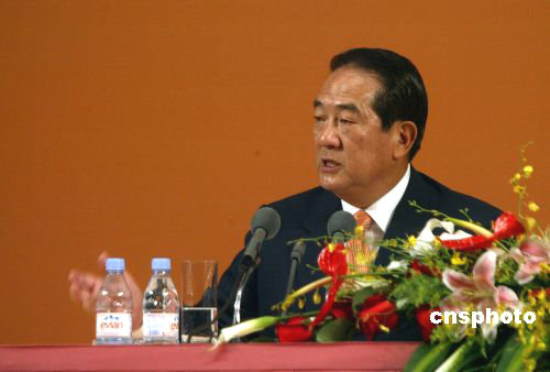 親民黨大陸訪問團(tuán)記者會(huì)今天下午在北京飯店舉行,數(shù)百名大陸、臺(tái)灣、港澳地區(qū)及外國(guó)記者聚焦于此。在介紹了和中共中央總書記胡錦濤會(huì)談的情況后,宋楚瑜回答了五位記者的提問。
