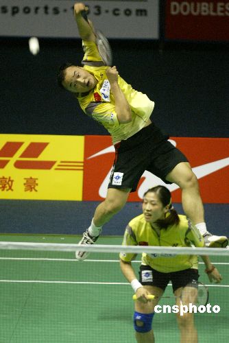 五月十二日,在北京首都體育館進(jìn)行的第九屆蘇迪曼杯世界羽毛球混合團(tuán)體錦標(biāo)賽大戰(zhàn)進(jìn)入了第三天,中國隊與印度尼西亞隊交鋒,在首場的混合雙打的比賽中,印度尼西亞組合林培雷、尤·泰蒂一比二不敵中國組合張軍、高崚。