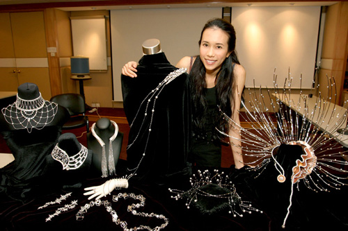 贊助商當(dāng)日準(zhǔn)備了超過十件得獎(jiǎng)的鉆飾予Karen試戴,所有鉆飾均是獨(dú)一無二的,總值超過三千萬。Karen表示:“我的演唱會(huì)主題是閃耀,愈閃我愈開心。”而Karen最喜歡的是其中一款項(xiàng)鏈,名為“熔融”,由超過一千三百六十顆白、粉紅及啡鉆鑲制,共三百一十四點(diǎn)三八卡,再加十八K白金及黃金,價(jià)值一千萬以上。原來光是此飾物凈重已超出十磅,更需要兩位專業(yè)人士協(xié)助,才可順利戴上。Karen笑言:“無論幾重都要戴,因?yàn)檎娴暮闷,而我更?huì)戴上這件特別的飾物做一個(gè)非常特別的表演,屆時(shí)大家一定要留意!