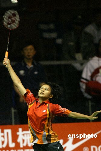 五月十四日,在北京首都體育館進(jìn)行的第九屆蘇迪曼杯世界羽毛球混合團(tuán)體錦標(biāo)賽大戰(zhàn)進(jìn)入了半決賽,首場(chǎng)半決賽由丹麥隊(duì)對(duì)陣印度尼西亞隊(duì),在女子單打比賽中,印度尼西亞選手弗·哈里二比一戰(zhàn)勝丹麥選手卡·索倫森,為印度尼西亞隊(duì)晉級(jí)決賽奪取關(guān)鍵的第三分。作者:盛佳鵬