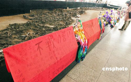 日本侵略者這種滅絕人性的殺戮行徑,令人神共憤,不僅讓中國(guó)人民刻骨銘心,也讓世界和平與正義人士義憤填膺。在“平頂山慘案紀(jì)念館”內(nèi),記者看到了許許多多來(lái)自日本的千紙鶴懸掛在遇難者遺骸的四周,這是日本“東日本鐵路工會(huì)代表團(tuán)”等等那些日本和平正義人士敬獻(xiàn)給這些無(wú)辜遇難者冤魂的!捌巾斏綉K案紀(jì)念館”館長(zhǎng)肖景全告訴記者,“平頂山慘案”遺址自上世紀(jì)七十年代開(kāi)挖以來(lái)便不斷有日本游客前來(lái)參觀。三十多年來(lái),已有數(shù)十萬(wàn)人次日本人到撫順參觀“平頂山慘案”遺址紀(jì)念館。每一位目睹“慘案遺址”的參觀者,面對(duì)累累白骨,無(wú)不為當(dāng)年日軍的殘暴所震驚。(完)
