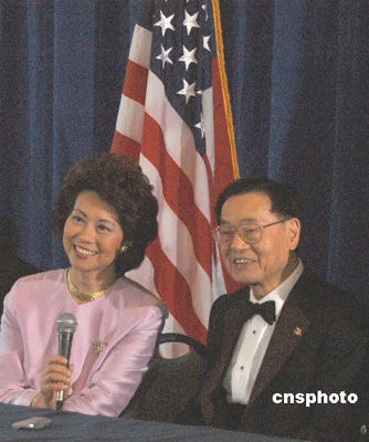 當(dāng)?shù)貢r(shí)間五月十四日,二00五年度美國(guó)愛利斯島移民榮譽(yù)獎(jiǎng)?lì)C獎(jiǎng)典禮隆重舉行。美國(guó)勞工部部長(zhǎng)趙小蘭和父親趙錫成—美國(guó)福貿(mào)(航運(yùn))集團(tuán)董事長(zhǎng)、著名偵探李昌鈺、美國(guó)華人進(jìn)口貿(mào)易協(xié)會(huì)主席蘇夢(mèng)娜、大紐約小商家聯(lián)盟主席謝美琳等五位華人榜上有名。圖為趙家父女一同接受記者采訪。作者:譚宏偉