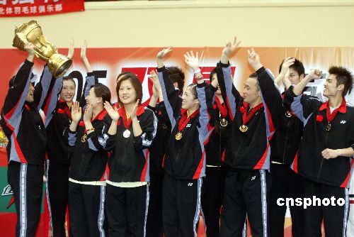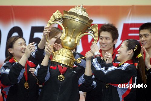 五月十五日晚,第九屆蘇迪曼杯世界羽毛球混合團(tuán)體錦標(biāo)賽決賽在北京首都體育館結(jié)束,在中國(guó)隊(duì)對(duì)陣印度尼西亞隊(duì)的比賽中,中國(guó)隊(duì)?wèi){借混雙、男單、女單三戰(zhàn)全勝的戰(zhàn)績(jī),順利奪得蘇迪曼杯。
