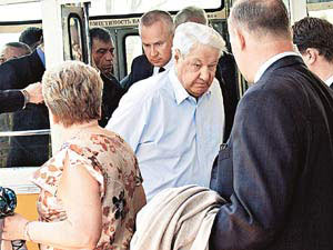中新網(wǎng)5月17日電 據(jù)俄羅斯《共青團(tuán)真理報(bào)》報(bào)道,俄羅斯前總統(tǒng)葉利欽16日乘專機(jī)飛抵烏拉爾地區(qū)基斯洛沃茨克市礦泉水城機(jī)場,同行乘客除以妻子奈娜為首的家人外,還有50年前烏拉爾工學(xué)院的同班同學(xué),一同前往療養(yǎng)勝地舉行聚會。