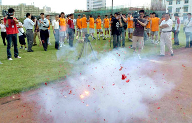 中新網(wǎng)5月17日電 今天下午四時,深圳健力寶俱樂部做出決定,宣布解除遲尚斌球隊主教練職務(wù),由郭瑞龍出任教練組組長。在深足總經(jīng)理楊猛宣布了任命消息后,觀看球隊訓(xùn)練的球迷中有人放鞭炮慶祝。