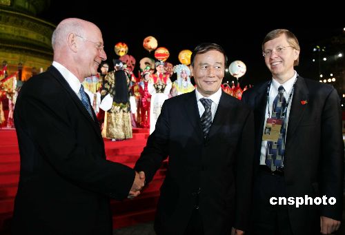 “在這美好的夜晚……我代表全體北京市民、向各位賓朋表示熱烈的歡迎……北京是一座歷史悠久、文化底蘊深厚的古都,同時也是一座朝氣蓬勃、向現(xiàn)代化快速邁進的城市……今天,一千五百萬勤勞和智慧的北京市民正在為實現(xiàn)新北京、新奧運的戰(zhàn)略構想而努力工作……北京將以更加積極的姿態(tài)走向世界……熱烈歡迎中外跨國公司、金融機構、高科技企業(yè)現(xiàn)代服務業(yè)企業(yè)來京投資,共享中國機會、北京機會”,王岐山依照與會諸人座位上早已放置的一份精美講稿原字誦讀。
