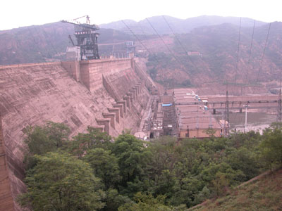 | 三門峽大壩距市區(qū)14公里,屬國家3A級旅游區(qū)。是建國后我國在黃河上興建的第一座大型水利樞紐工程。1957年4月13日開工興建,1960年10月大壩建成蓄水。主壩為混凝土重力壩,壩長713.2米,最大壩高106米;副壩為鋼筋混凝土心墻土壩,長144米,最大壩高24米。主、副壩總長為857.2米。電站廠房為壩后式,全長223.88米,寬26.2米,可安裝8臺發(fā)電機(jī)組,現(xiàn)有7臺機(jī)組,發(fā)電量41萬千瓦,為低水頭徑流發(fā)電。三門峽大壩工程之大,氣魄之雄,當(dāng)時(shí)在我國首屈一指,也為世界矚目。以后,工程又進(jìn)行改建,庫區(qū)淤積大為減輕,進(jìn)出庫泥沙基本平衡,實(shí)現(xiàn)了防洪、防凌、灌溉和發(fā)電、供水等綜合效益。并可控制黃河流域面積的91.5%。僅發(fā)電一項(xiàng),截至1986年已全部收回國家對這項(xiàng)工程的投資。