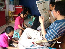 5月19日,重慶榮昌市民在某擦鞋連鎖店里接受擦鞋服務(wù)時閱讀報紙。據(jù)了解,該擦鞋連鎖店經(jīng)營者不僅將“一元錢擦鞋”的小生意開成連鎖店,還在店內(nèi)為顧客提供茶水、報刊閱覽等免費服務(wù)。增添文化內(nèi)涵“連鎖擦鞋”受到市民的歡迎,每天顧客絡(luò)繹不絕。作者:朱蕓鋒