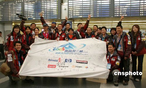 | “2005地球第三極珠峰大行動(dòng)”五月二十日從北京啟程。三十三名志愿者從首都機(jī)場出發(fā)前往西藏拉薩,他們將和西藏登山隊(duì)專業(yè)隊(duì)員、當(dāng)?shù)馗呱絽f(xié)作一起,克服珠峰地區(qū)高寒、狂風(fēng)、缺氧、低壓等惡劣的自然環(huán)境,對存留在珠穆朗瑪峰海拔5120米大本營至海拔8000米之間的登山廢棄物進(jìn)行全面清理。作者:陸媛