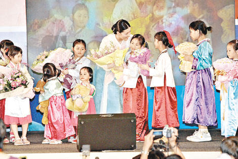 萬眾期待的李英愛,身穿韓服于三時十五分到場,現(xiàn)場觀眾紛紛站起來,搖著手上的紙扇歡迎她,又以韓文高呼“我愛你”。她走紅地氈進(jìn)場時,除了一直保持笑容,還向觀眾揮手及握手,令觀眾情緒十分高漲。她在后臺逗留了十分鐘,到三時廿五分才上臺,即時以廣東話向現(xiàn)場巿民打招呼:“大家好,你好嗎?我系李英愛!比珗隽r歡呼,她繼而用韓文道:“多謝大家在這里,希望大家學(xué)大長今的精神,祝大家健康快樂!彼终f好開心跟大家近距離親密接觸,希望大家繼續(xù)愛她支持她,又以廣東話說:“多謝!多謝!”