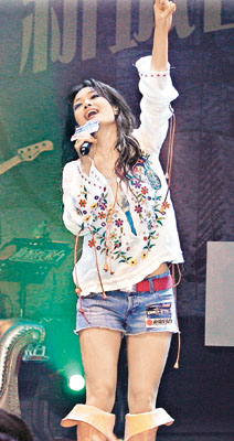 中新網(wǎng)5月23日電 據(jù)香港媒體報道,容祖兒和張信哲前晚在會展合作舉行《新城容我信愛一唱傾情音樂會》,祖兒身穿熱褲透視衫露黑bra大秀性感。開場時兩人合唱多首歌曲,令觀眾拍爛手掌,祖兒一時忘形說:“多謝張信哲給我的音樂會做特別嘉賓,我好少同帥哥合作!笔潞笞鎯禾寡砸蛱o張才說錯,她說:“其實我是想講拍檔!倍⒄艽蠓秸f:“無所謂,很久沒跟美女合作了!