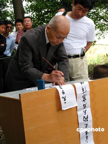 5月23日,91歲的日本侵華老兵本多立太郎來到了江蘇金壇洮西鎮(zhèn)西湖村,向這里的一座抗戰(zhàn)無名烈士墓敬獻了花圈,花圈的挽幛上寫道:“金壇縣殉死者哀悼謹祈念平和,本多立太郎敬挽。”在墓前,本多立太郎向長眠在這里的一名無名烈士深深鞠躬,表達了發(fā)自內(nèi)心的悔罪之意。作者:胡平