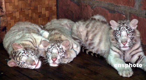 5月30日,重慶野生動物世界工作人員把2004年9月出生的3只小白虎和2005年元月出生的7只小熊獨(dú)自關(guān)在各自的小屋里,馴化它們的表演能力,以期達(dá)到在各種環(huán)境下一招制勝的本領(lǐng)。作者:陳仕川
