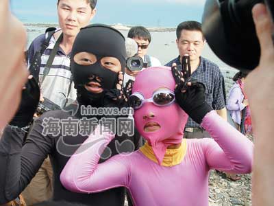 在現(xiàn)場(chǎng),組織者向記者介紹,胡淙泰和郭思妤是今天上午7時(shí)20分從廣東省徐聞縣海安排尾角海灘下水開(kāi)始橫渡,分別于下午3時(shí)40分和3時(shí)44分在?诤5閸u美麗沙海灘登陸,用時(shí)8小時(shí)20分和8小時(shí)24分,游程21.7公里。(李灝)