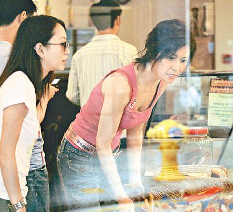 之后一行人到了附近的餐廳喝下午茶,身穿背心的Maggie彎腰在凍柜揀蛋糕時(shí),露出豐胸后的美好身段,一坐下已急不及待展示剛剛選購(gòu)的泳衣,并在自己身上比量,又不斷問友人漂不漂亮,臉上充滿自信。只見她胃口不錯(cuò),短短時(shí)間已吃下不少東西。