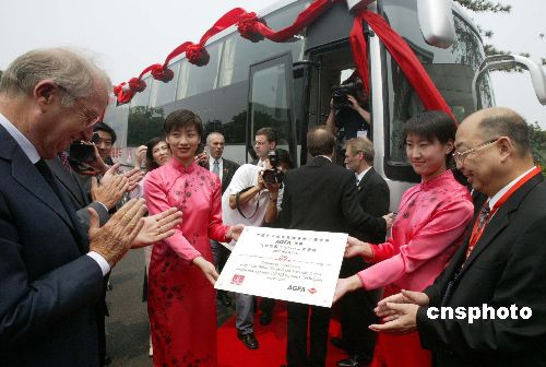 六月七日,愛克發(fā)--吉華集團(tuán)等在北京釣魚臺國賓館舉行中國“百萬婦女乳腺普查工程”檢查車捐贈及交接儀式。正在中國進(jìn)行國事訪問的比利時國王Albert二世出席儀式并為流動乳腺普查車揭幕。作者:任海霞