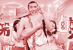 黃立行極力爭取林志玲的擁抱,“金曲獎那天我看到王力宏抱她,差點想K他!绷种玖岵灰捎兴瑥堥_雙臂擁抱,黃立行雙手摟住她的腰和背部,不但用力,還露很‘爽’的表情,“我現(xiàn)在沒有女友,有也變沒有了!弊詈笊钋榈卣f:“我是全世界最幸運的男人!比珗鋈诵牧,林志玲尷尬地羞紅臉說:“我覺得害羞傻眼!
