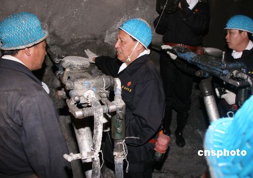 | 6月7日上午9時,全國人大常委會副委員長成思危率全國人大常委會《安全生產(chǎn)法》檢查組來到了黑龍江省鶴崗市鶴礦集團(tuán)南山煤礦,檢查煤礦安全生產(chǎn)情況。檢查組乘井罐來到了千尺井下的掘進(jìn)工作面。和井下中心變電所檢查,升井后又到南山煤礦生產(chǎn)調(diào)度室、井上瓦斯抽放區(qū)進(jìn)行檢查。作者:房寶樹