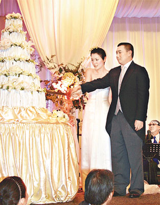 中新網(wǎng)6月9日電 據(jù)香港媒體報(bào)道,杜汶澤與田蕊妮前晚筵開(kāi)五十席婚宴,廣邀圈中好友。期間新娘子田蕊妮拋花球時(shí),竟“內(nèi)定”由楊千嬅去接,千嬅上臺(tái)接過(guò)花球后,感動(dòng)得淚灑當(dāng)場(chǎng)。