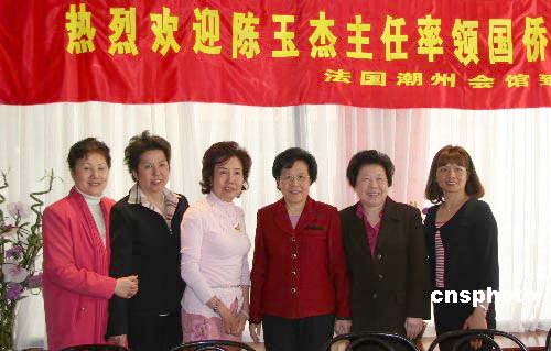 | 當(dāng)?shù)貢r間6月9日,國務(wù)院僑辦主任陳玉杰一行繼英國、意大利之后到訪法國,開始其歐洲之行的第三站也是最后一站的宣慰僑胞之旅。陳主任在法國潮洲會館參觀了華文學(xué)校,并同部分法國僑領(lǐng)舉行了座談。座談結(jié)束后,僑胞紛紛與陳玉杰主任合影。圖為陳玉杰主任(右三)和僑辦國外司副司長朱慧玲(右一)與潮洲會館的女僑領(lǐng)們在一起合影。作者:鐘誠