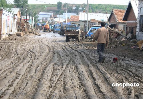 六月十日,黑龍江省寧安市沙蘭鎮(zhèn)遭遇二百年一遇洪災(zāi),截至六月十三日中午,已知有九十二人遇難,其中包括八十八名小學(xué)生。圖為洪水襲擊后的沙蘭鎮(zhèn)街道。作者:吳兆飛
