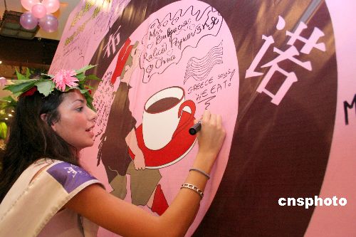 6月13日,“2005國際旅游小姐中國之旅河南巡游團”走進鄭州卡布奇諾西餐廳,參加卡布奇諾美麗PARTY活動。美女們紛紛施展各自才華表演精彩節(jié)目,讓現(xiàn)場佳賓領(lǐng)略她們典雅美麗的風采。作者:陳代述