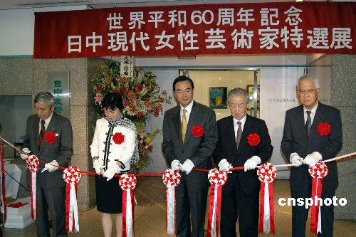 中新社東京六月十五日電(記者滕劍峰)由中國對外友協(xié)和日中友好會館共同舉辦的“世界和平六十周年紀念日中現(xiàn)代女性藝術(shù)家特選展”開幕式今天在日中友好會館舉行。中國駐日大使王毅、中國對外友協(xié)副會長李小林、日中友好會館理事長村上立躬及部分中日女藝術(shù)家代表參加。