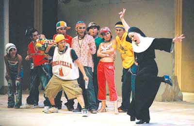 很多人都對(duì)黑人女星烏比·戈德堡主演的喜劇電影《修女也瘋狂》記憶猶新,《跑路救天使》即改編自此片。該劇在2004年由臺(tái)灣果陀劇場推出,當(dāng)時(shí)曾創(chuàng)下連演31場場場爆滿的記錄,很多場次中謝幕時(shí)間竟長達(dá)30分鐘。而果陀劇場也是臺(tái)灣戲劇界的重要組成部分,它一直致力于“中文歌舞劇”的演出,獲得過多項(xiàng)表演大獎(jiǎng),被業(yè)內(nèi)人士稱為“東方百老匯”。有意思的是該劇中還使用了很多觀眾耳熟能詳?shù)牧餍懈枨,像《讀你》、王菲的《我愿意》、張惠妹的《姐妹》、劉文正的《誰在眨眼睛》等等,而且風(fēng)格與我們熟悉的曲調(diào)有了很大改變,像《讀你》就被唱出了“圣歌”的味道。