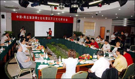 中新蘇州網6月20日電 (姚靜)周莊旅游博士論壇暨沈萬三文化研討會昨天下午在周莊召開,旅游博士、沈萬三研究專家以及研究會會員、旅行社等40余人參加了會議。