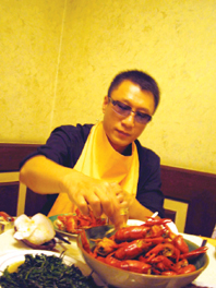 孫紅雷在南京拍片多次,就愛吃南京的大龍蝦,19日中午,特地趕去一家飯店吃龍蝦,開吃前他是談笑風(fēng)生,龍蝦一上桌,他就一言不發(fā),如入無(wú)人之境。眨眼功夫,一盤光了,第二盤剛上,我們以為他會(huì)說(shuō)不要了,哪知孫紅雷竟說(shuō)“再來(lái)兩盤!”看他吃得那么香,一桌人都樂(lè)壞了,記者在一邊悄悄估算了一下,孫紅雷這頓一人共吃了四盤90多只龍蝦。完了還執(zhí)意掏錢買了兩大包,說(shuō)要帶回北京去。