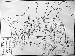 該地圖是那志良在協(xié)助臺灣“教育部部長”杭立武編寫《中華文物三十年》時(shí)畫出的,王慶臺在整理資料時(shí)參考了該圖并進(jìn)行了一些補(bǔ)充和完善!洞\(yùn)合約書》手抄副本