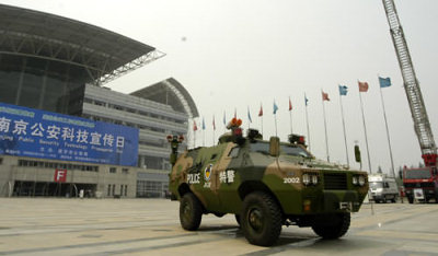 中新網(wǎng)6月23日點(diǎn) 據(jù)中國(guó)江蘇網(wǎng)消息,警用裝甲車可以裝備反坦克導(dǎo)彈!昨天上午,在南京國(guó)際公共安全產(chǎn)品技術(shù)展覽會(huì)上展出的警用新裝備。