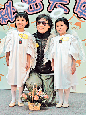 中新網6月27日電 據香港《大公報》報道,陳奕迅(Eason)和鄧麗欣(Stephy)聯同多位歌手昨日一同支持『秘密天使』助老計劃活動。席間Eason與一眾班長者和小朋友們示范體操,又得到兩名小天使向他獻花,可能已為人父,看到小朋友特別開心,他忍不住要求兩位小天使向他拋飛吻。