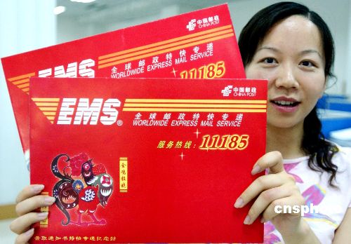 2005年6月28日,河南省啟用由中國郵政發(fā)行的2005年高考錄取通知書專用特快專遞信封。這種專遞信封采用喜慶的大紅顏色和傳統(tǒng)的“金雞報曉”的圖案為考生送去喜訊。作者:馬健