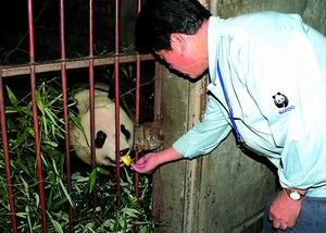 來到北京動(dòng)物園近一個(gè)月,淺見和其他飼養(yǎng)員一樣,在熊貓館打掃衛(wèi)生,給熊貓清洗食物。由于熊貓對他還不是很熟悉,所以他只能隔著鐵欄桿給熊貓喂食,以防發(fā)生危險(xiǎn)。淺見說,他與熊貓“結(jié)緣”,要追溯到十多年前,1988年第一次在中國看到熊貓后,他就喜歡上了它:“熊貓是世界上最可愛的動(dòng)物!