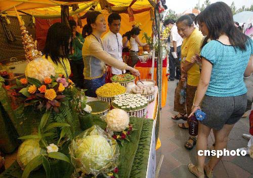 作為慶祝中泰建交三十周年的大型活動(dòng)--“泰.美好”2005泰國風(fēng)情節(jié),七月一日在北京朝陽公園舉行。眾多泰國的美味佳肴讓北京市民一飽口福。作者:任海霞