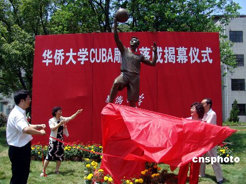 | 七月二日上午,由華僑大學(xué)香港校友會捐贈給母校的CUBA標志性雕塑揭幕儀式在該校的春華園內(nèi)舉行。據(jù)雕塑的設(shè)計者——華僑大學(xué)藝術(shù)系孫德明老師介紹,該雕塑由華僑大學(xué)香港校友會捐資十三點五萬元,歷時一個多月建造的。雕塑高三點四米,以華大學(xué)生為原型,設(shè)計成具像、動態(tài)的單手投籃的動作,體現(xiàn)了當代大學(xué)生積極向上、拼搏的精神風(fēng)貌。作者:石勇