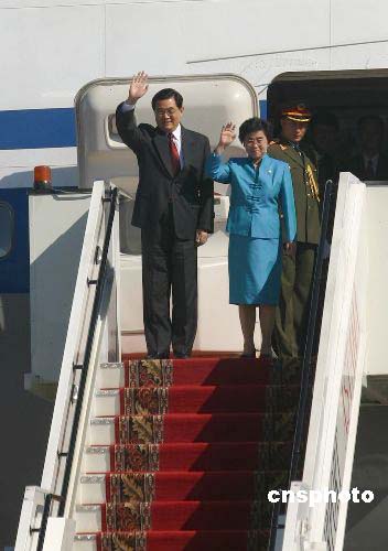 胡錦濤主席在機場發(fā)表了書面講話。他說,建交以來,兩國相互理解和信任,不斷加深政治、經貿、能源、交通、科技、人文等領域的合作,成果豐碩。在地區(qū)和國際事務中的合作富有成效,兩國關系已進入全面發(fā)展新階段。