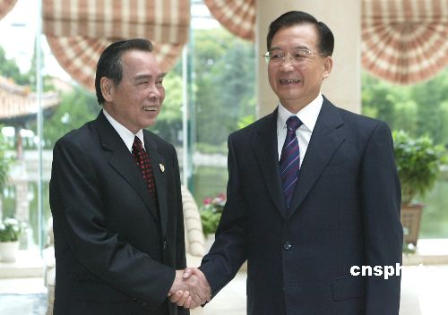 七月四日,中國國務(wù)院總理溫家寶在云南昆明會見前來參加大湄公河次區(qū)域經(jīng)濟(jì)合作第二次領(lǐng)導(dǎo)人會議的越南總理潘文凱。作者:廖文靜