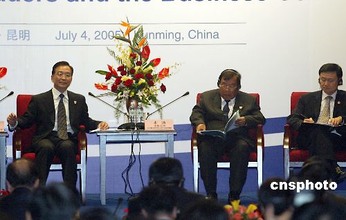 七月四日,中國國務(wù)院總理溫家寶在昆明與參加大湄公河次區(qū)域經(jīng)濟合作第二次領(lǐng)導(dǎo)人會議的工商界代表舉行對話會。作者:廖文靜