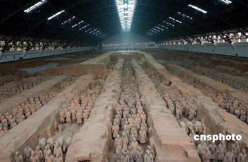 “奇器珍怪徙藏滿之”一語出自司馬遷筆下。《史記》明文記載的有“金雁”、“珠玉”、“翡翠”等。八十年代末考古工作者在地宮西側(cè)發(fā)掘出土了一組大型彩繪銅車馬。車馬造型之準(zhǔn)確,裝飾之精美舉世罕見。之前,考古工作者還發(fā)掘出土了一組木車馬,除車馬、御官俑為木質(zhì)外,其余車馬飾件均為金、銀、銅鑄造而成。地宮外側(cè)居然珍藏了如此之精美的隨葬品,那么,地宮內(nèi)隨葬品之豐富、藏品之精致是可想而知的。
