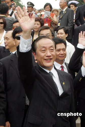 新黨主席郁慕明率領(lǐng)的新黨“民族之旅”訪問(wèn)團(tuán)七月七日拜謁廣州黃花崗七十二烈士陵園。郁慕明向在路旁歡迎的廣州市民揮手致意。作者:毛建軍