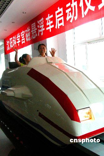 7月9日,一位女士帶著孩子在沈陽(yáng)科學(xué)宮乘坐磁懸浮車。該磁懸浮車軌道60米,是全國(guó)室內(nèi)最長(zhǎng)的軌道,往返1分60秒。自6月24日運(yùn)行以來(lái),每天接待100多名顧客。作者:劉寶成
